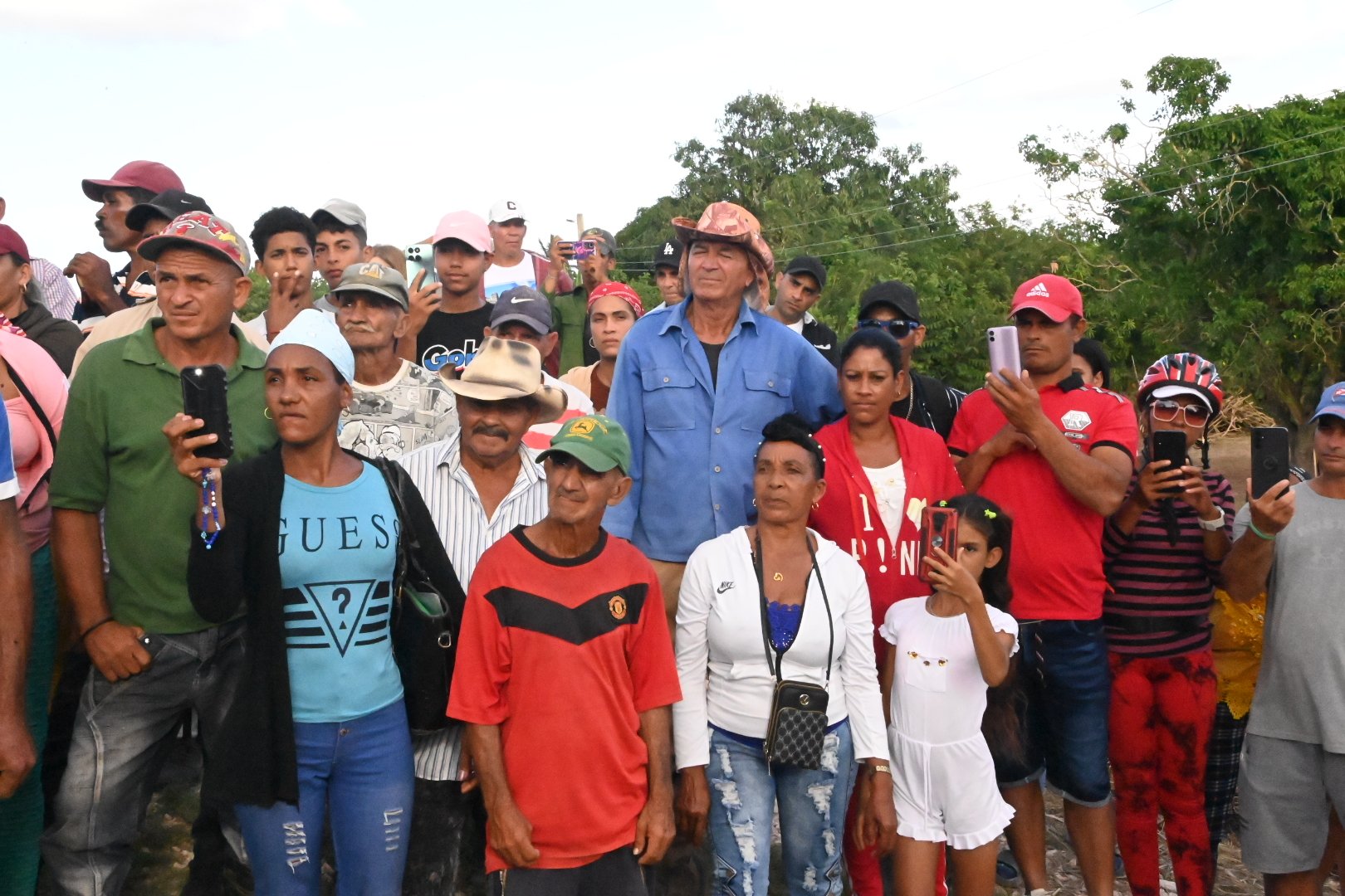 Al borde de la carretera, sobre unos dos metros por encima del caserío —y que devino en dique para represar las aguas de Melissa y ahogar los hogares de muchas familias—, lo esperaba una representación de las mujeres y hombres de la comunidad para saludarlo y agradecer, primero por priorizar la vida y ahora por el apoyo material y emocional para seguir adelante e incluso mejorar sus condiciones materiales y de espíritu.