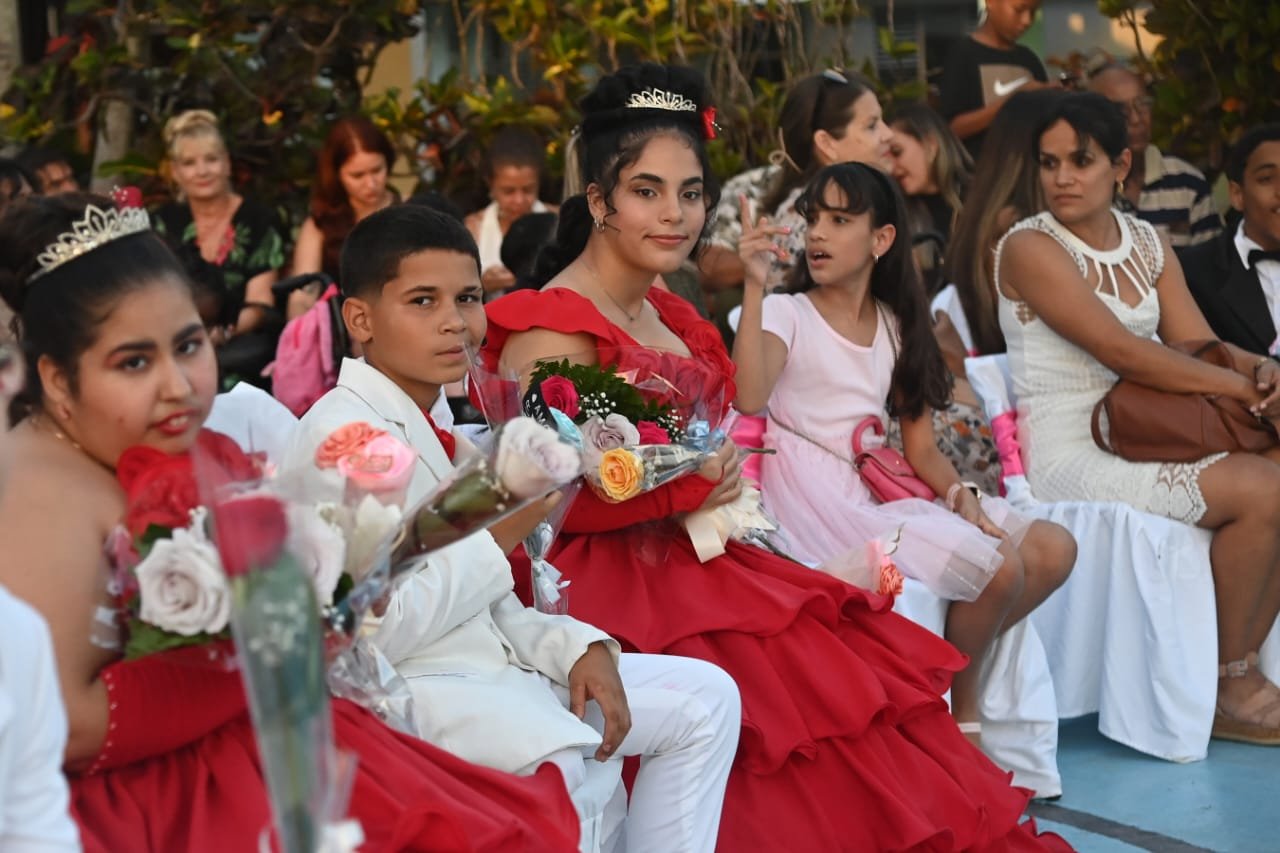 Natalia, Alejandro, Dayán, Flabia de la Caridad, Lis Melissa, Leonardo, María Carla, Miguel Alejandro, Javier Lázaro, Yelena, fueron saliendo a la plazoleta para el baile inaugural junto a sus parejas –enamoradas, amigos, amigas, hermanas, condiscípulos, padres-; igual lo hicieron Raciel, María Carla Porras, Anthony Didier, Wisin Daniel, Víctor Adrián, Melany, Maikol, María Carla Serrano y Yeidén.