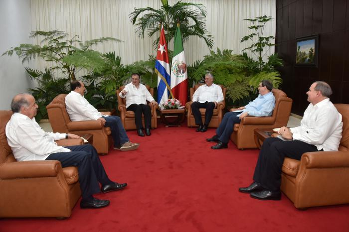 Acompañaron al distinguido visitante el subsecretario para América Latina y el Caribe, Maximiliano Reyes Zúñiga; el jefe de Asesores de la Presidencia, Lázaro Cárdenas Batel; la directora general de Cooperación Técnica y Científica de la Agencia Mexicana de Cooperación Internacional para el Desarrollo, Laura Elena Carrillo Cubillas y el embajador de México en Cuba, Excmo. Sr. Miguel Ignacio Díaz Reynoso.